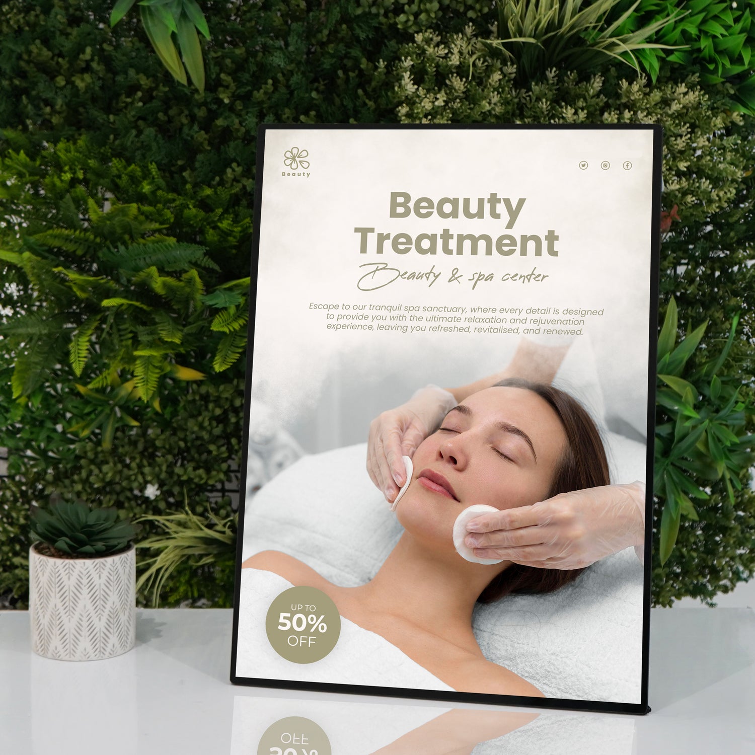 Tillverkade med en stilren svart aluminiumlegeringsram och en härdad glasskiva, utstrålar dessa displayer hållbarhet och elegans. Den rektangulära ramen är ultratunn och passar sömlöst in i alla miljöer.