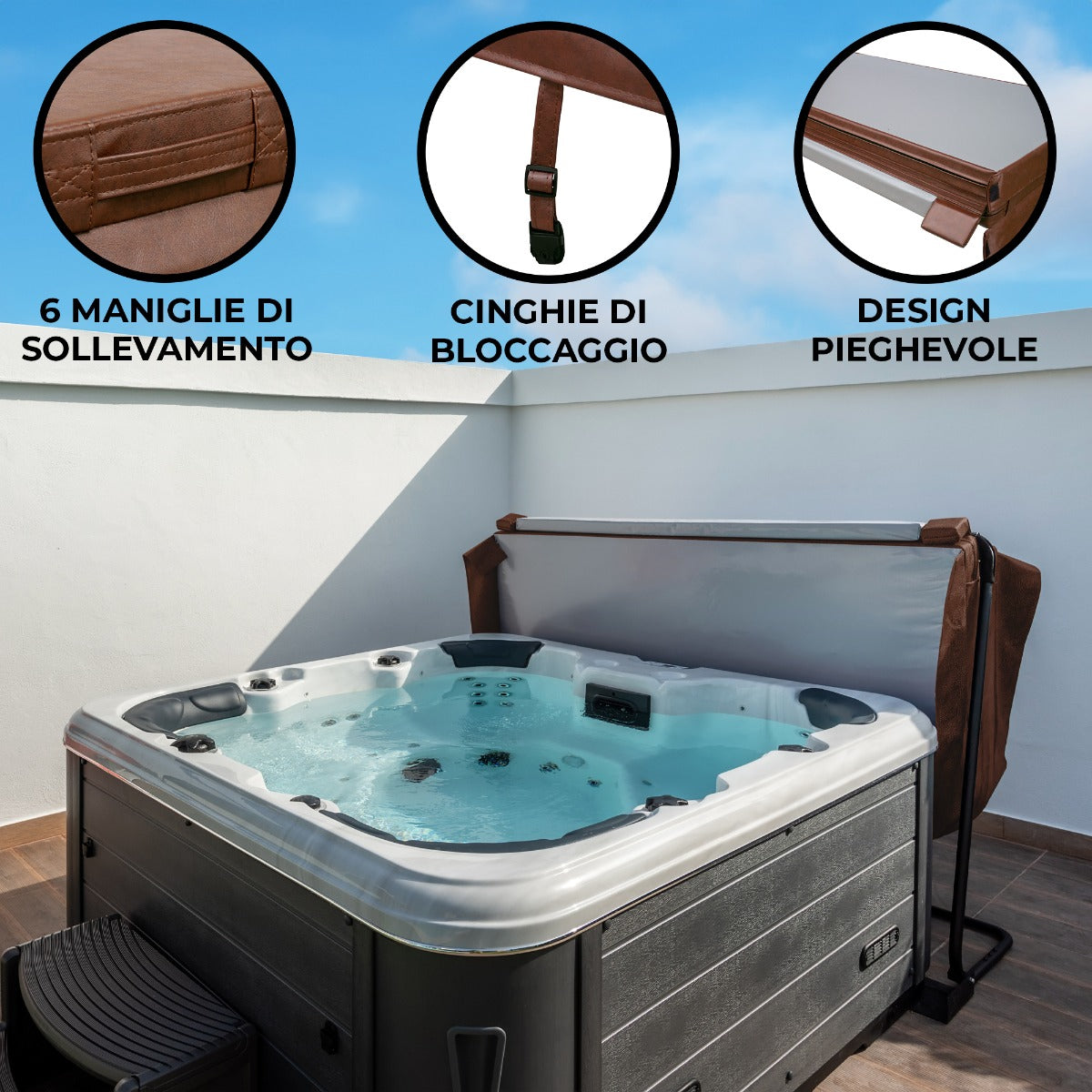 Genom att kombinera funktionalitet, säkerhet och stil, lägger detta jacuzzilock till ett extra lager av bekvämlighet till din spaupplevelse. Med sin eleganta läderfinish kompletterar det utan ansträngning all utomhusinredning och lägger till en touch av elegans till ditt spaområde.
