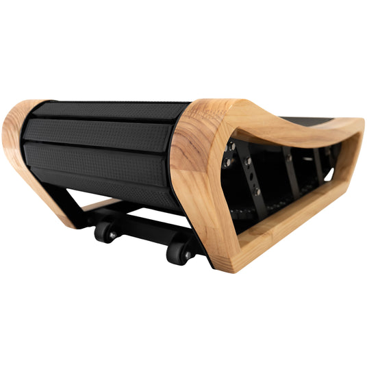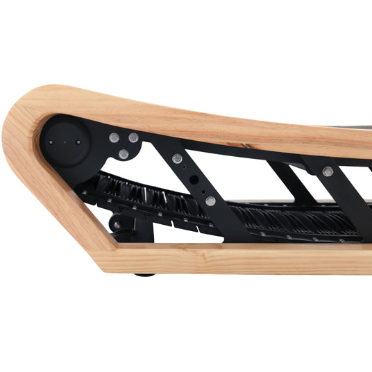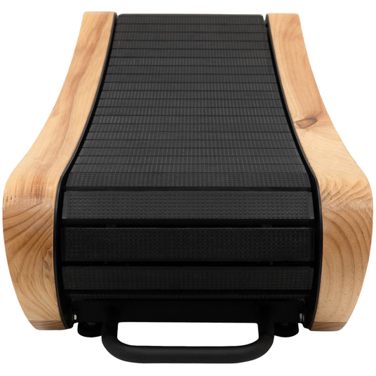 Med en slät träfinish och rena linjer utan handtag förenar detta löpband naturlig värme med en modern och minimalistisk estetik. Den öppna konstruktionen passar enkelt under de flesta höj- och sänkbara skrivbord och ger full rörelsefrihet tillsammans med en stilren, samtida design.