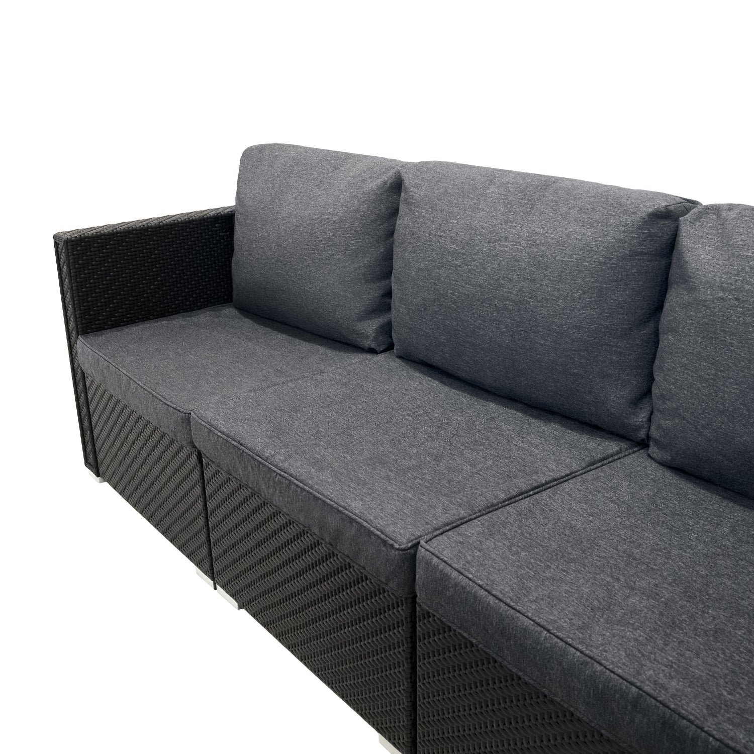 Omvandla din utomhusmiljö till en elegant och funktionell oas med detta moderna modulära rattanmöbelset i svart, som även inkluderar en förvaringslåda på 700L för att hålla ditt utrymme organiserat utan ansträngning.