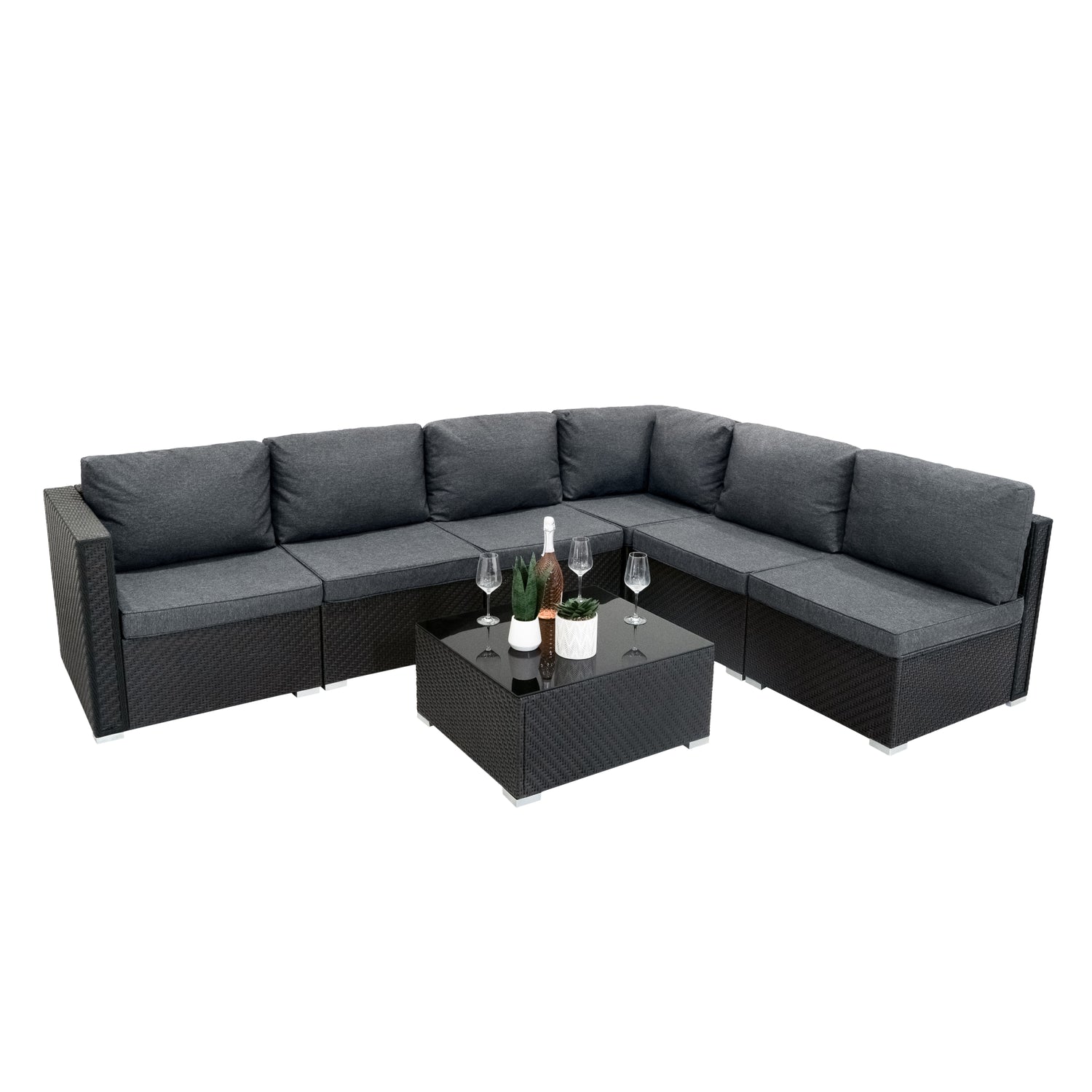 Modulärt Rattanset – 7 Delar – Svart