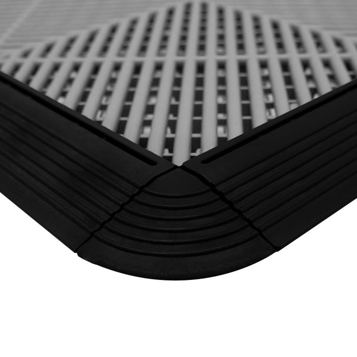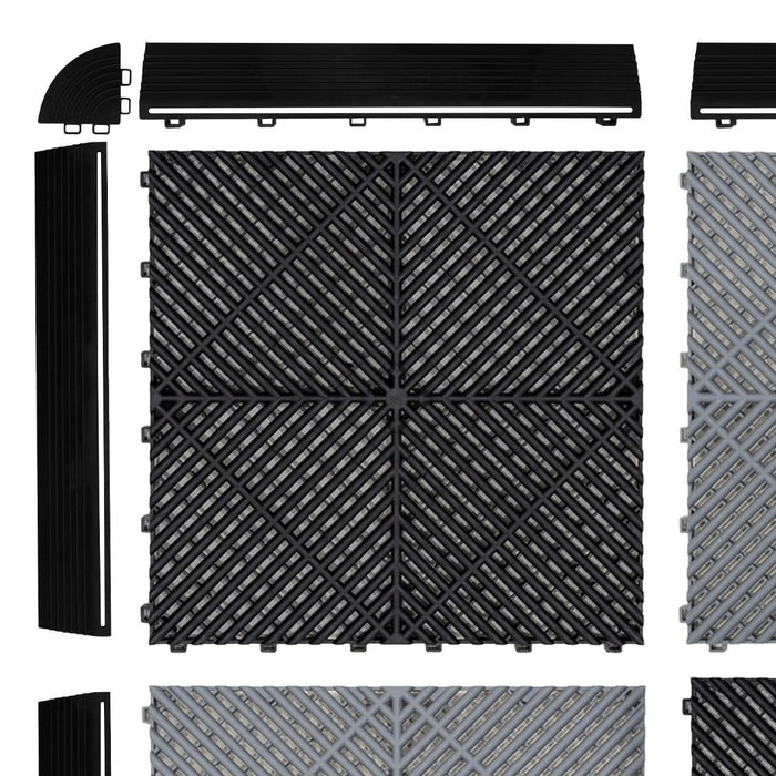 - 4 lådor med 30 ventilerade garageplattor i Svart.