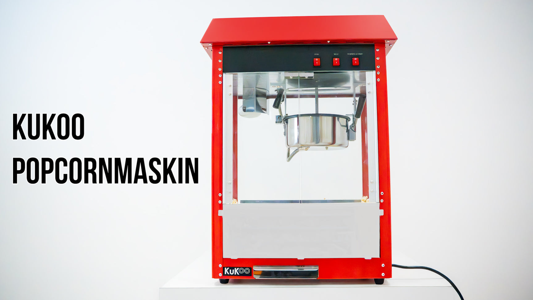 - Behållare av rostfritt stål med lock så att popcorn inte faller ut.
