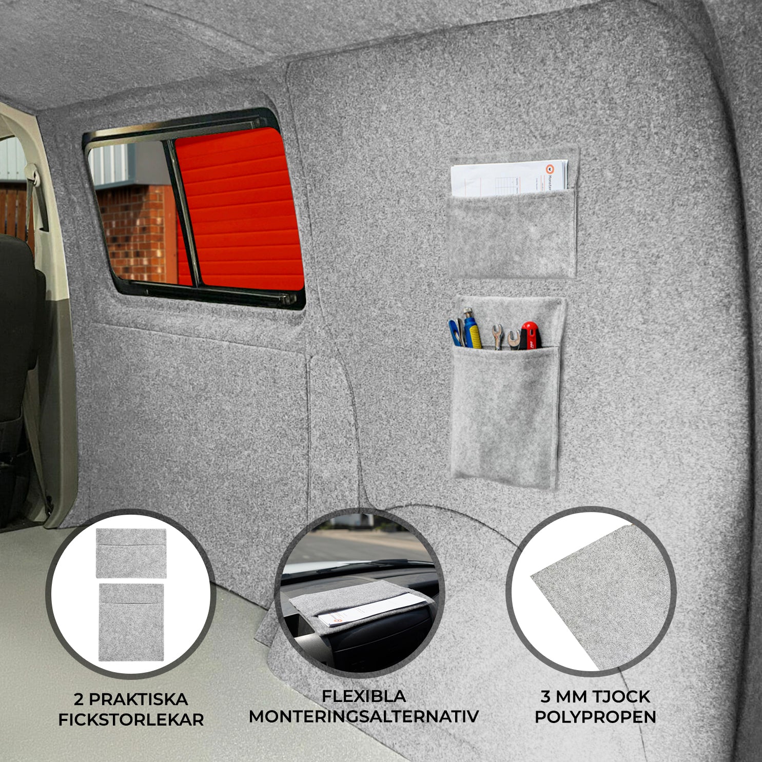 Dessa robusta fickor är designade för att hålla dina verktyg, små utrustningar, papper och andra nödvändigheter prydligt förvarade och lättillgängliga. Oavsett om du är en professionell på språng eller en road trip-entusiast, erbjuder dessa fickor den perfekta kombinationen av funktionalitet och estetik.