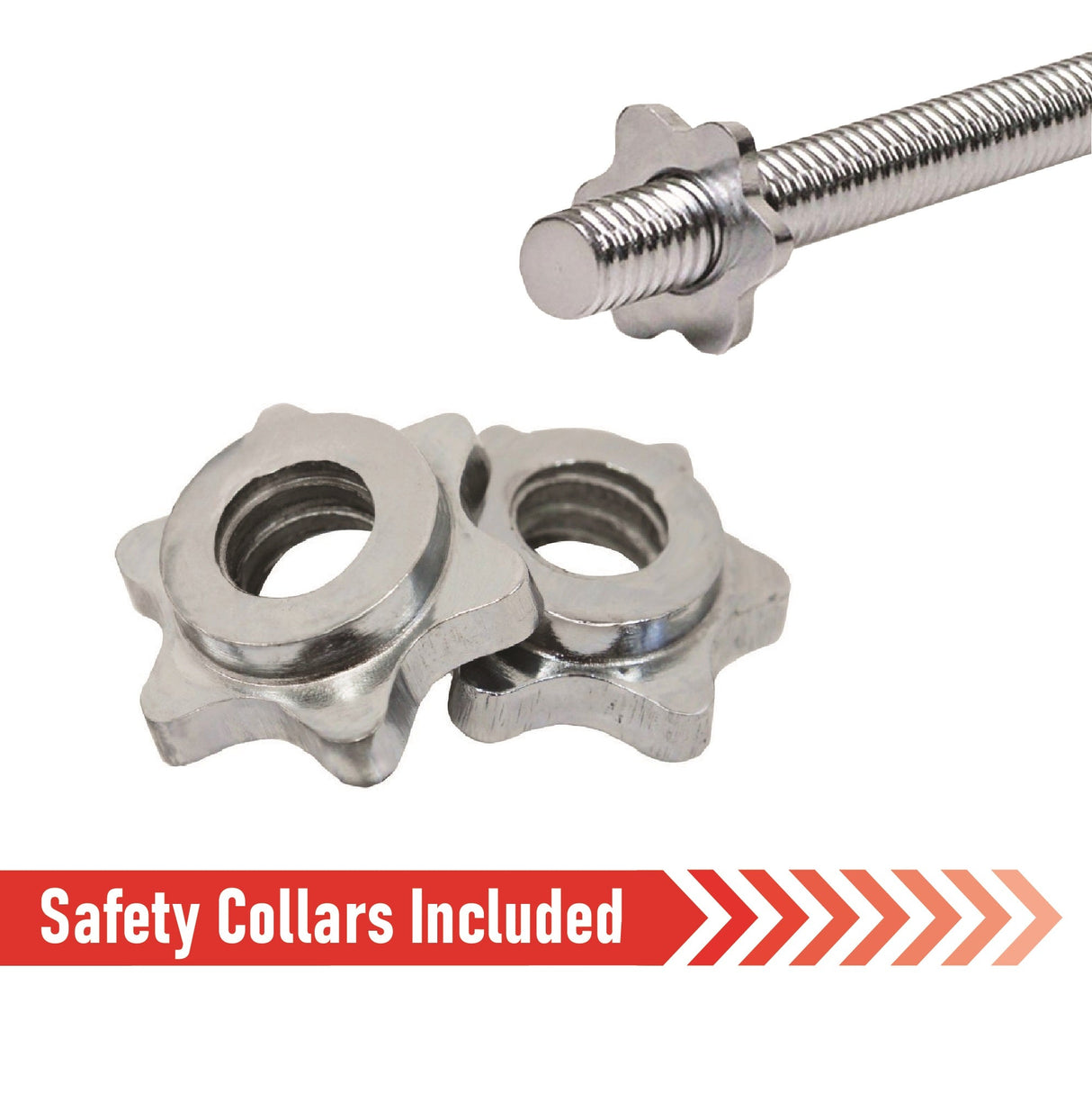 • VIKTSTÅNG - Tillverkad av hållbart, tungt solidt kromstål med en viktkapacitet på 120KG. Denna 1,2m EZ-stång finns med fjäderlås eller spinnlås.
