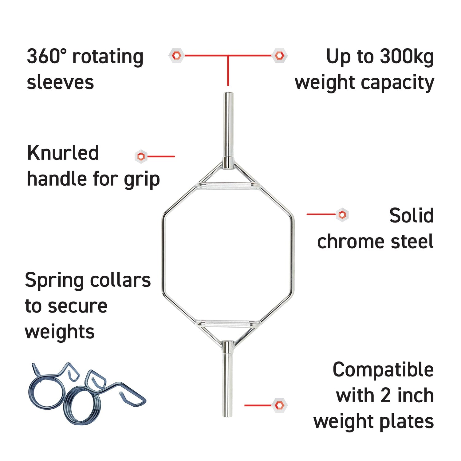 - EXPERTDESIGNAD - Handtagen har en räfflad greppdesign och är gjorda av kromstål för att ge ett bättre grepp som förbättrar kontrollen under tunga marklyft, shrugs och farmers walks.