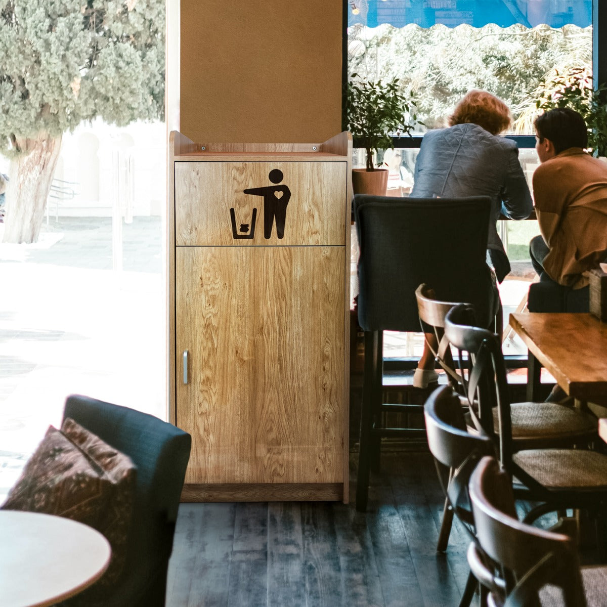 Håll ditt Front-of-House snyggt och prydligt samtidigt som du behåller en elegant estetik med dessa fantastiska behållare för papperskorgar och brickställ i ljus ek.