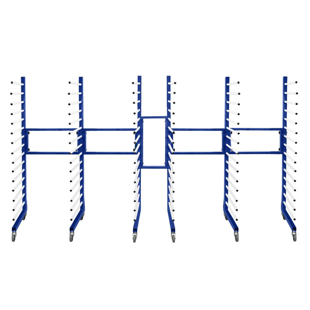 Varje ställning har 15 praktiska torkningslager, vilket ger gott om plats för dina målade föremål och underlättar effektiv och organiserad torkning i din måleributik eller verkstad. Med en robust pulverlackerad stålram säkerställer dessa ställningar inte bara hållbarhet utan lägger också till en snygg och professionell finish som kompletterar estetiken i din arbetsplats. Detta premiummaterial bidrar till deras styrka och har en imponerande viktkapacitet på 25 kg per hyllplan, vilket gör dem lämpliga för frekvent användning i industriella miljöer.
