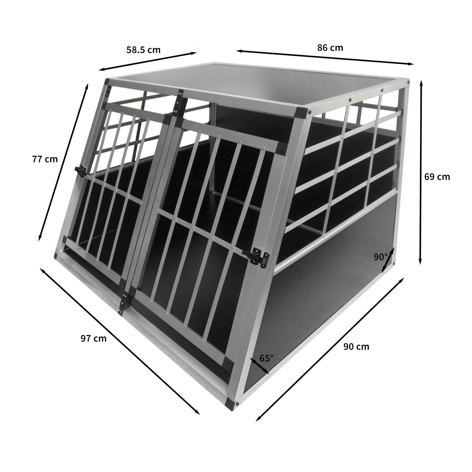 Transportera ditt husdjur på ett säkert sätt med våra aluminium trapetsformade transportburar. Finns i olika storlekar med val mellan en enkel eller dubbel dörr. Detta är den perfekta lösningen för transport av husdjur in i bilen. Oavsett om det är en resa till veterinären eller en rolig dag på stranden, med våra transportburar blir det garanterat en säker resa.