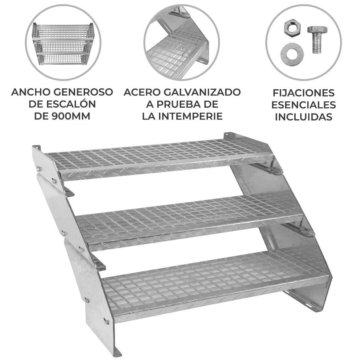Justerbar 3-delad Galvaniserad Trappa - 900mm Bred