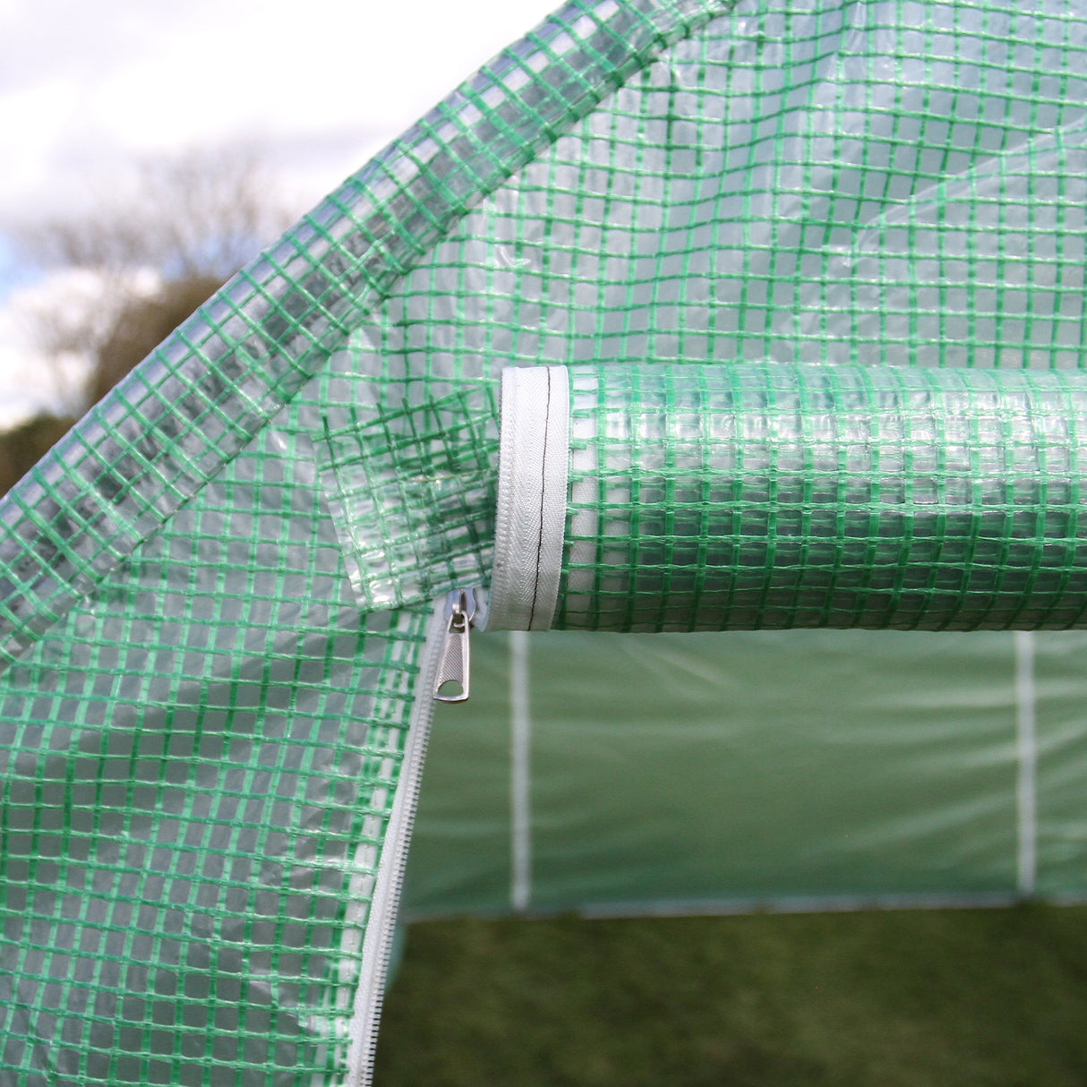 PE-överdraget har en stor dörr framtill för enkel åtkomst. Dörren kan enkelt öppnas och rullas upp med de medföljande repen, vilket skapar ett större utrymme och förser bättre ventilation för dina växter under hela året. Med dörrar i båda ändar är åtkomsten enkel, vilket gör skötseln av dina växter så bekväm som möjligt.