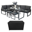 Setet levereras med ett praktiskt, vattentätt överdrag som skyddar dina möbler från väder och vind när de inte används. Detta extra skydd bidrar till att bevara setets utseende och hållbarhet, så att du kan lägga mer tid på att njuta av utelivet och mindre på underhåll.