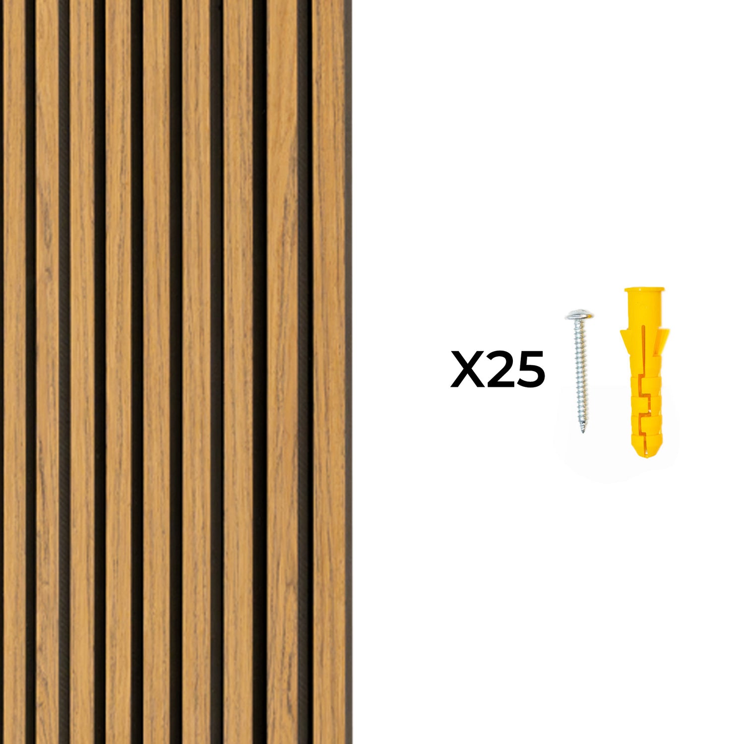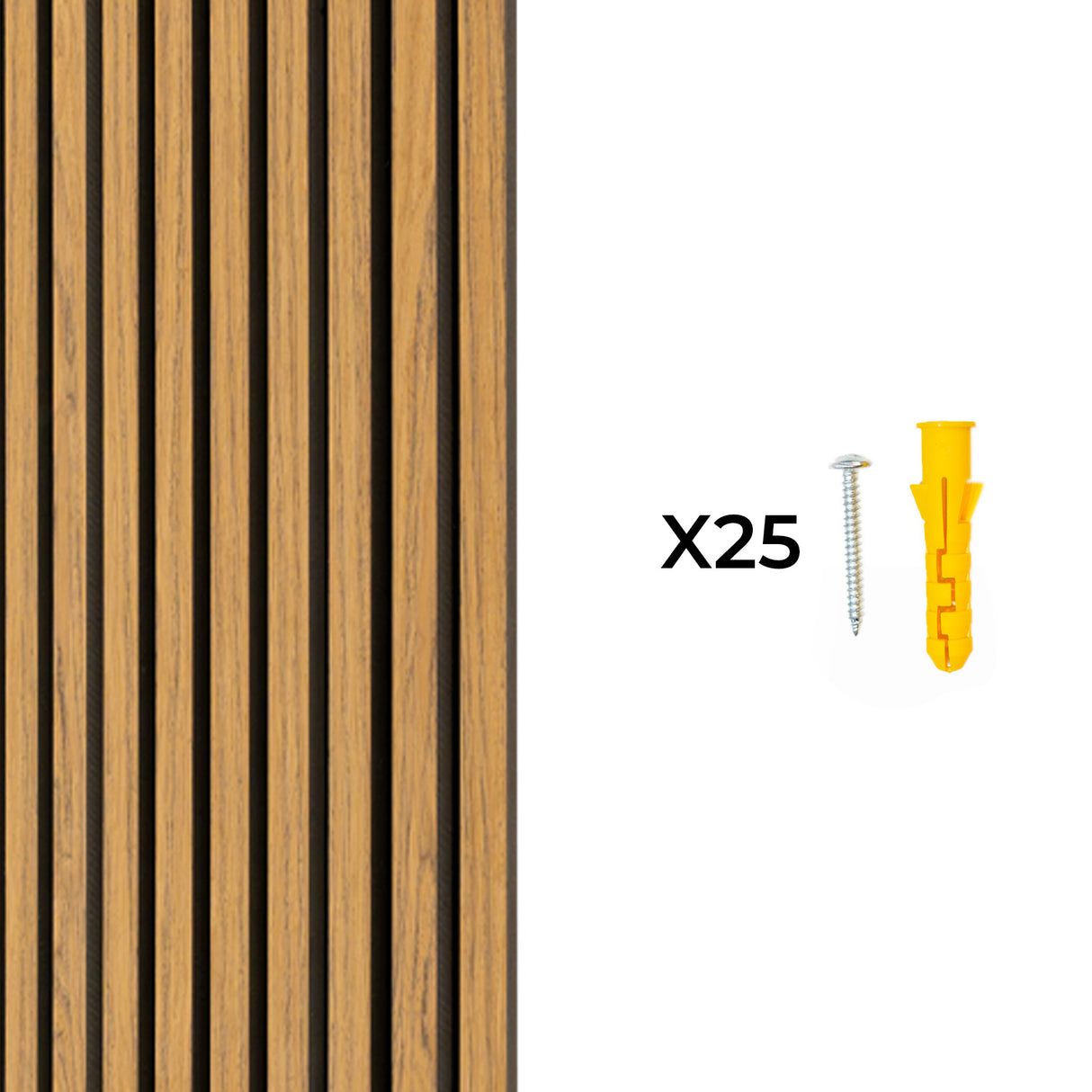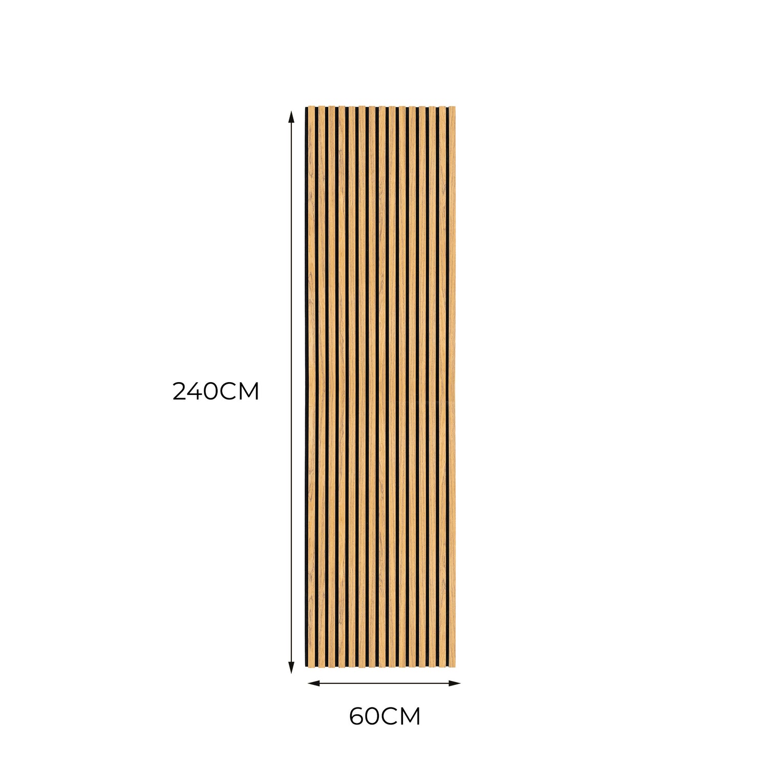 Tillverkade med precision, är ribborna gjorda av slitstarkt MDF med en fanerad träfinish, vilket ger den varma och tidlösa känslan av naturlig ek. Varje ribba är monterad på en 9 mm tjock filtbas, som effektivt dämpar ljud samtidigt som den är brandsäker för extra säkerhet. Ribborna är 27 mm breda och 12 mm tjocka, med ett mellanrum på 13 mm, vilket skapar ett modernt och stilrent mönster som kompletterar alla typer av inredning. De noggrant utvalda materialen garanterar både en visuellt tilltalande design och långvarig prestanda.