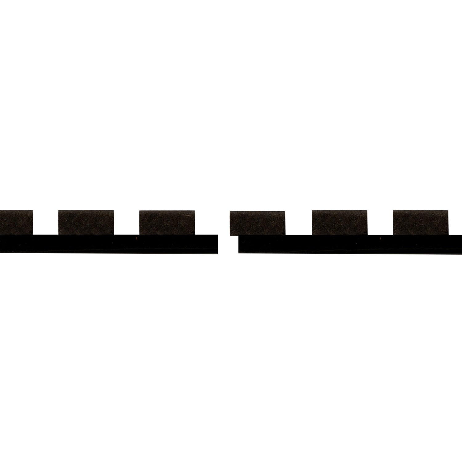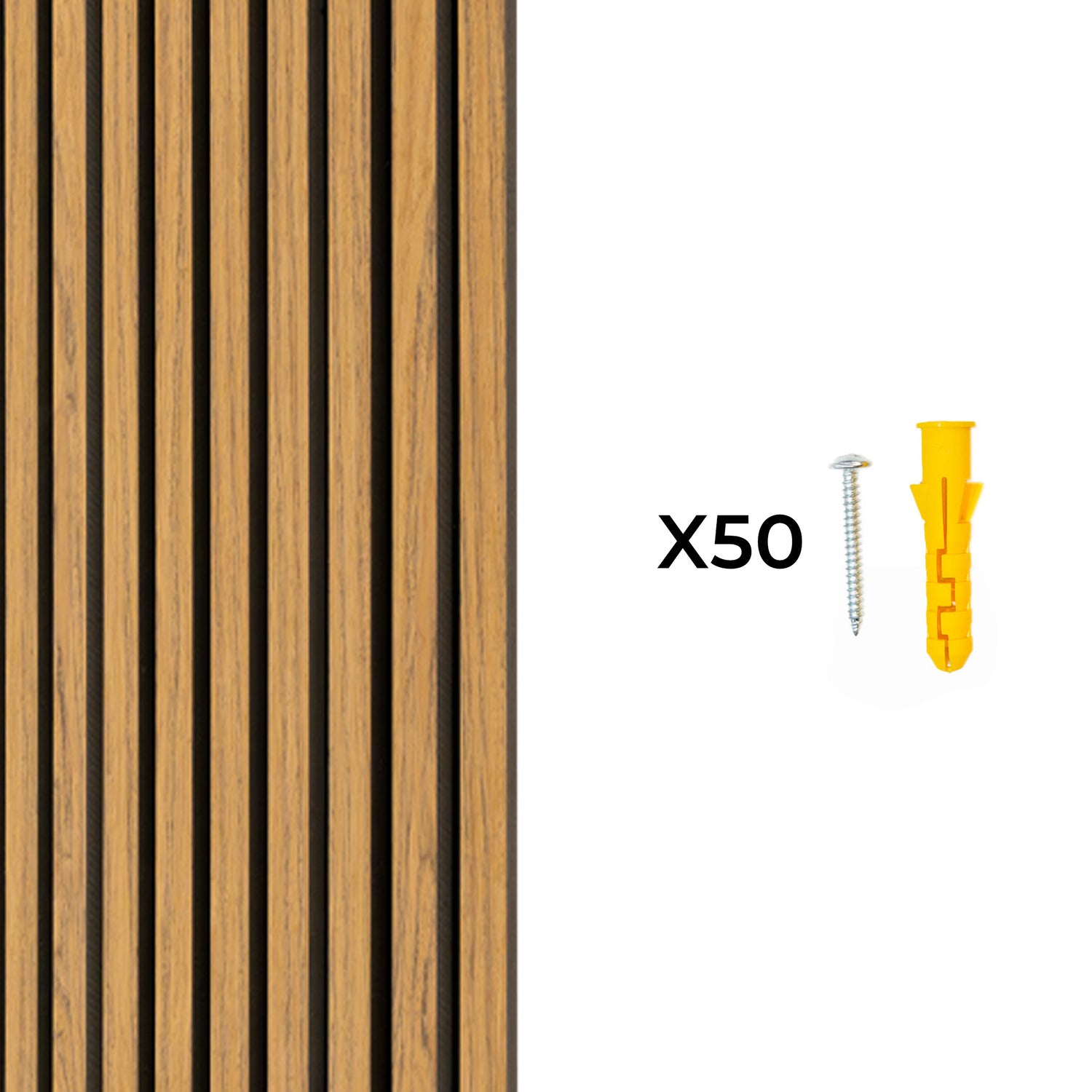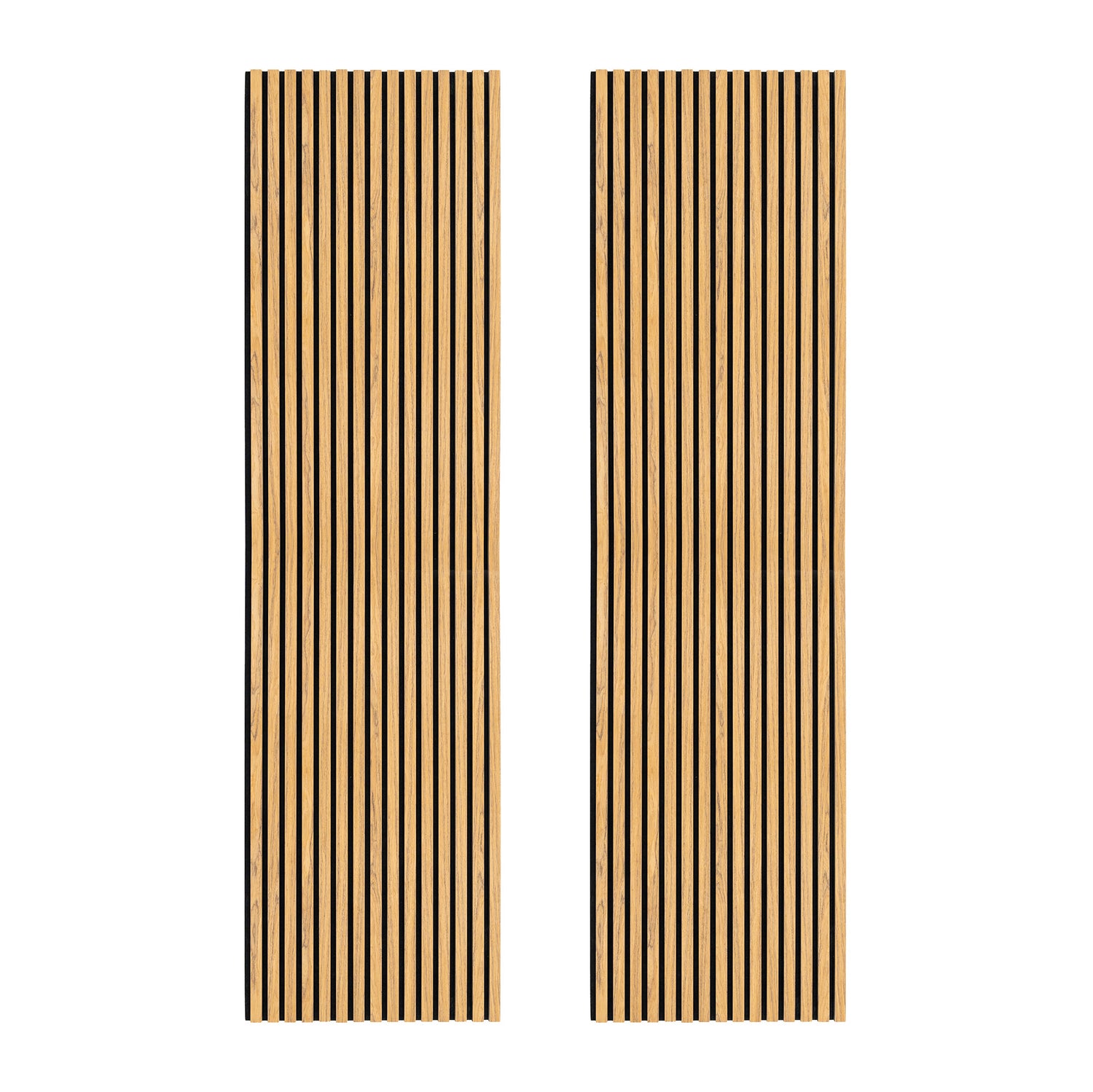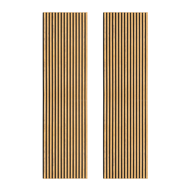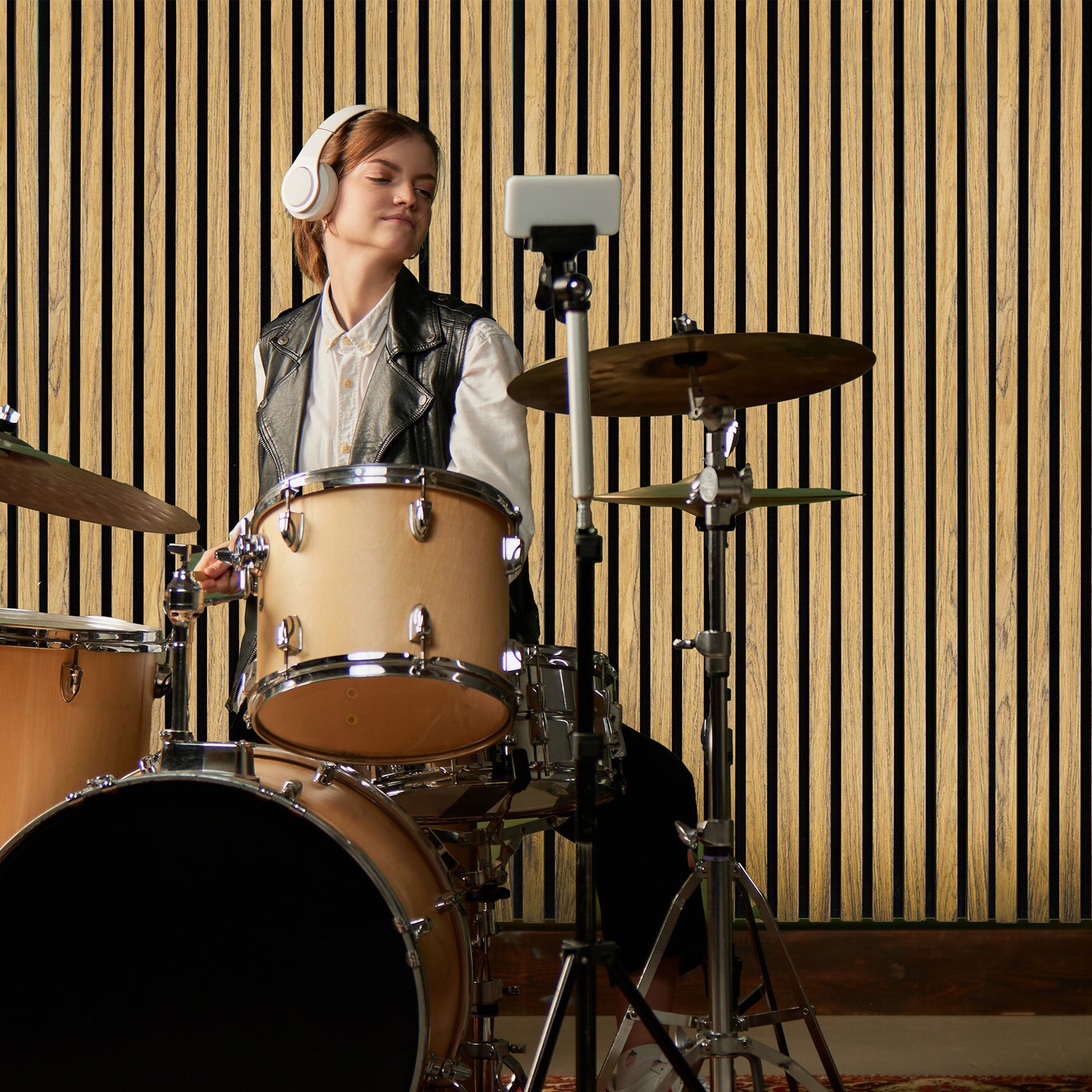 Tillverkade med precision, är ribborna gjorda av slitstarkt MDF med en fanerad träfinish, vilket ger den varma och tidlösa känslan av naturlig ek. Varje ribba är monterad på en 9 mm tjock filtbas, som effektivt dämpar ljud samtidigt som den är brandsäker för extra säkerhet. Ribborna är 27 mm breda och 12 mm tjocka, med ett mellanrum på 13 mm, vilket skapar ett modernt och stilrent mönster som kompletterar alla typer av inredning. De noggrant utvalda materialen garanterar både en visuellt tilltalande design och långvarig prestanda.