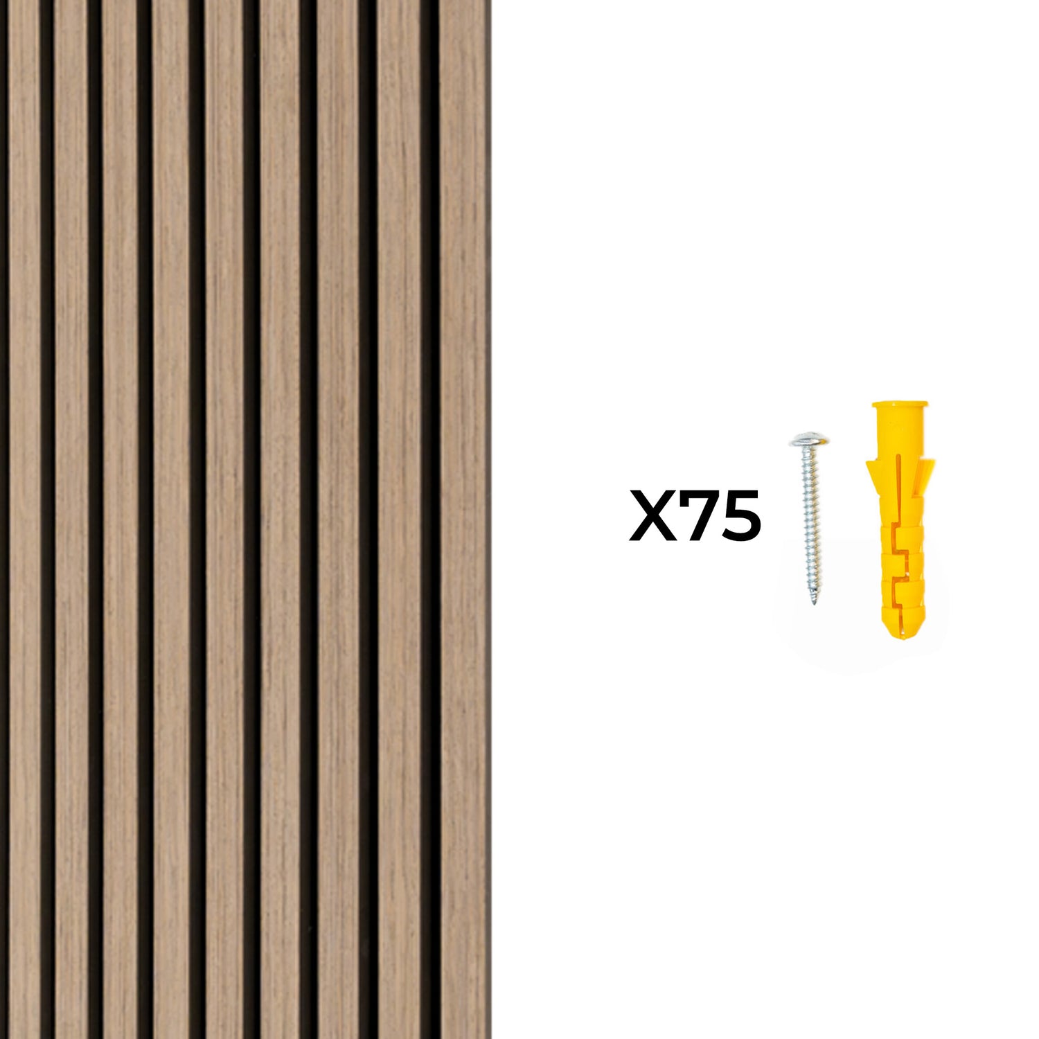 Tillverkade med precision, är ribborna gjorda av slitstarkt MDF med en fanerad träfinish, vilket ger den varma och tidlösa känslan av naturlig ljus Valnötlook. Varje ribba är monterad på en 9 mm tjock filtbas, som effektivt dämpar ljud samtidigt som den är brandsäker för extra säkerhet. Ribborna är 27 mm breda och 12 mm tjocka, med ett mellanrum på 13 mm, vilket skapar ett modernt och stilrent mönster som kompletterar alla typer av inredning. De noggrant utvalda materialen garanterar både en visuellt tilltalande design och långvarig prestanda.