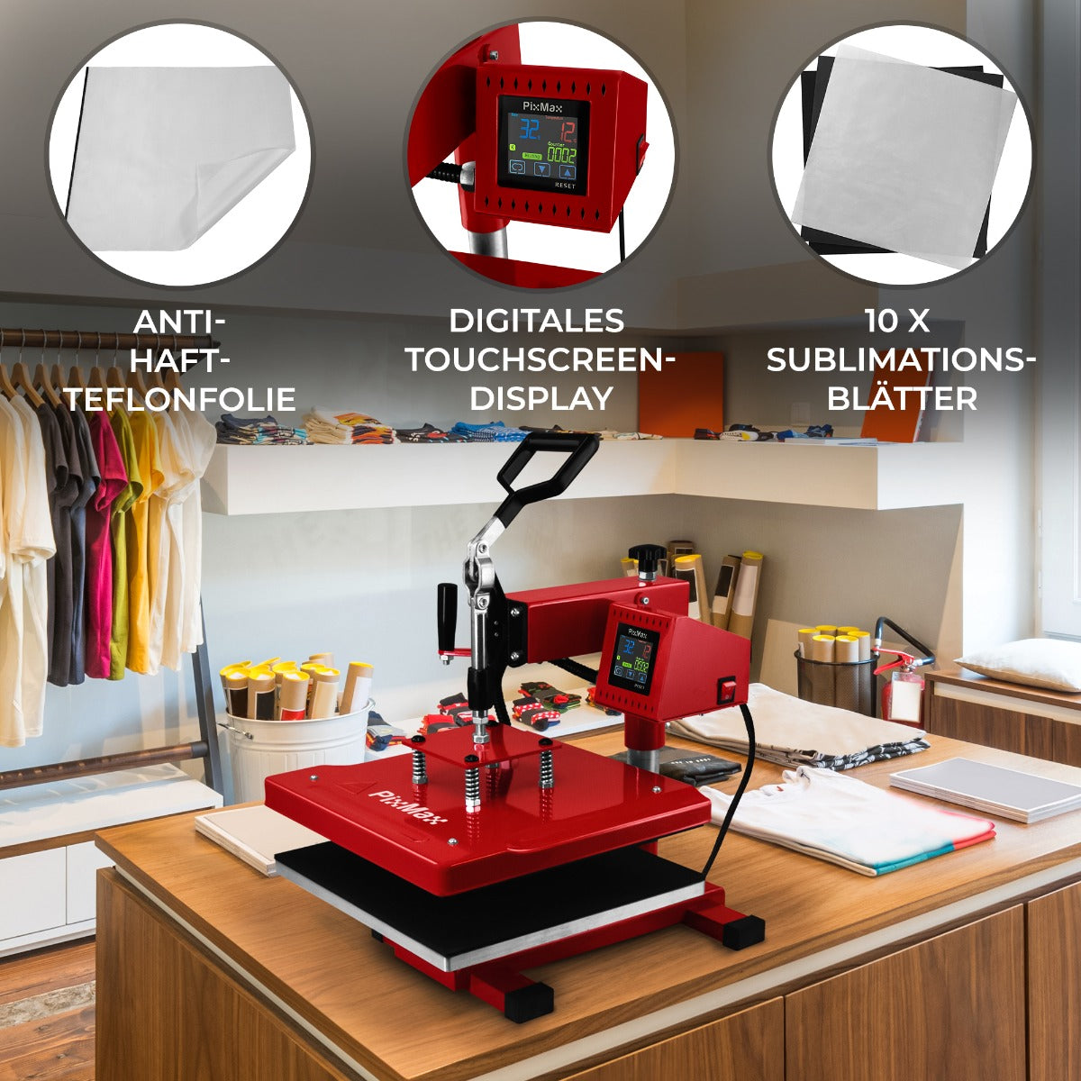 Ta ditt varumärke till nästa nivå genom att förvandla nästan alla plana sublimeringsförbrukningsmaterial till din egen personliga skylt, tack vare denna kraftfulla 38cm x 38cm värmepress från PixMax.