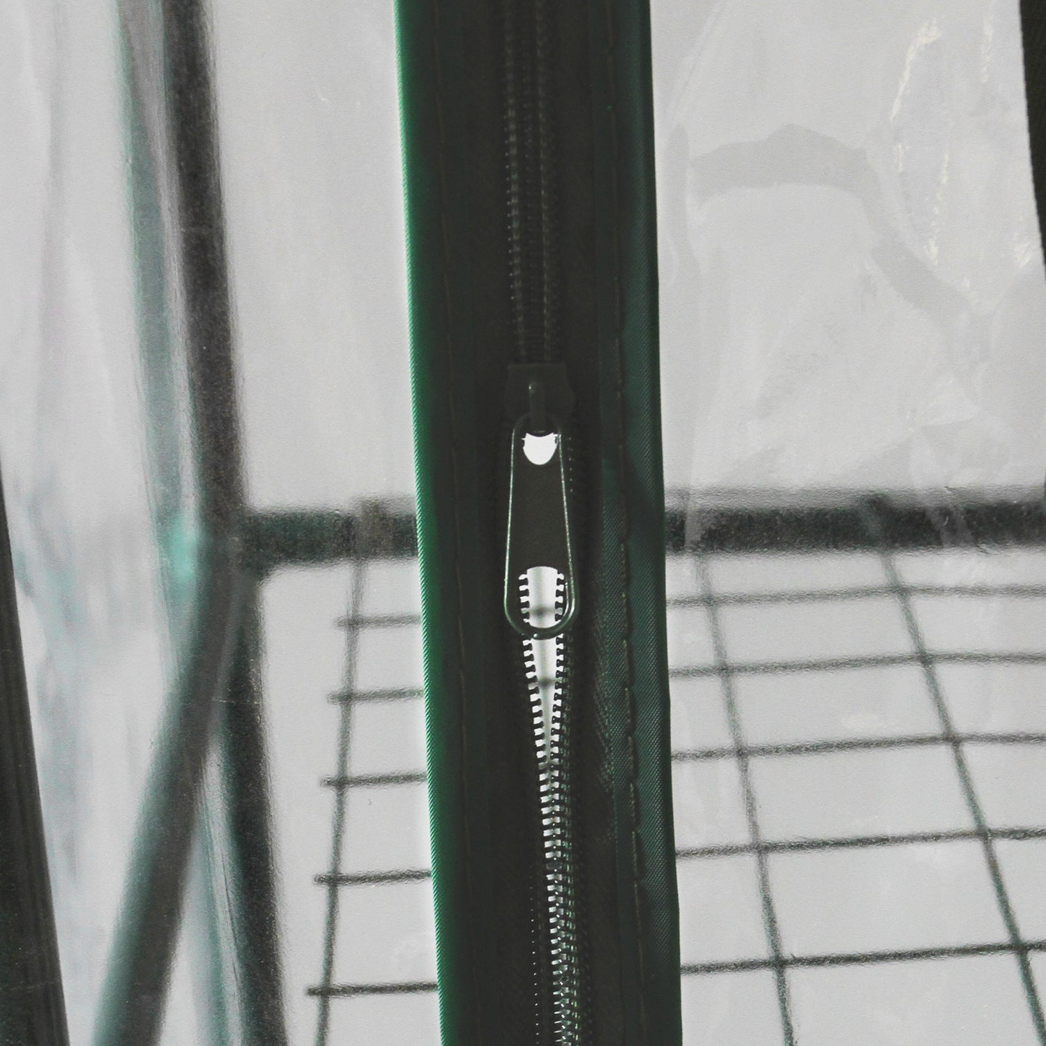 Den säkra dragkedjan säkerställer en trygg miljö för dina växter att blomstra. Tillgänglighet är nyckeln: Den främre upprullningsbara dörren gör att skötseln av dina växter inte krånglar alls. Det rullbara överdraget möjliggör inte bara enkel åtkomst utan förser även utmärkt ventilation så att dina växter kan frodas. Den lätta strukturen säkerställer att miniväxthuset enkelt kan flyttas runt i din trädgård så att dina trädgårdsskapelser alltid placeras på den bästa platsen i din trädgård.
