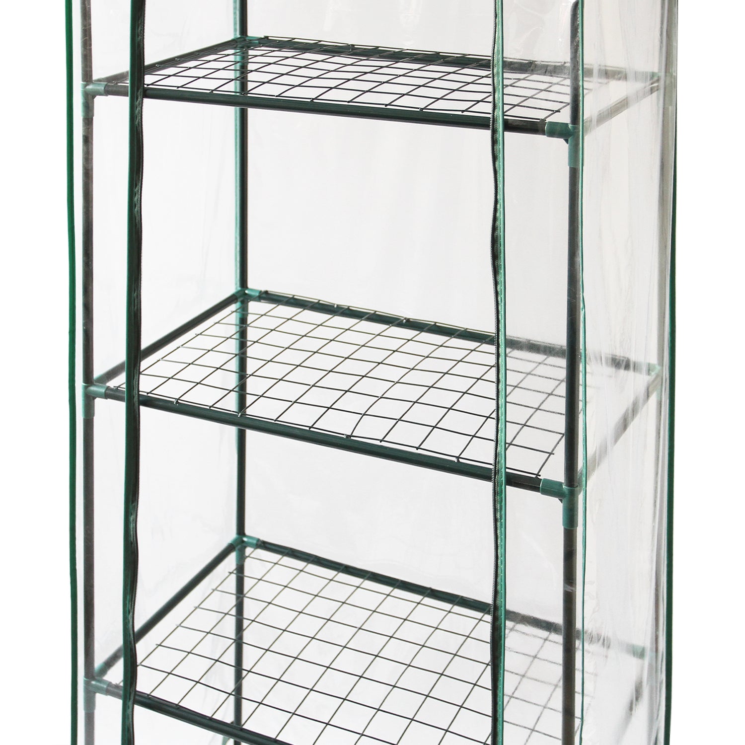 Ge dina växter och plantor den bästa starten på livet med detta praktiska miniväxthus, oavsett årstid. Detta miniväxthus mäter 59 x 39 x 160 cm och är perfekt för små utrymmen med gott om plats och gott om hyllor för att organisera dina växter. Det slitstarka, vattentäta plastskyddet skyddar dina växter från väder som regn, frost, hårda vindar och UV-strålar. Växthuset kan användas inomhus och utomhus och rymmer en mängd olika växtstorlekar.