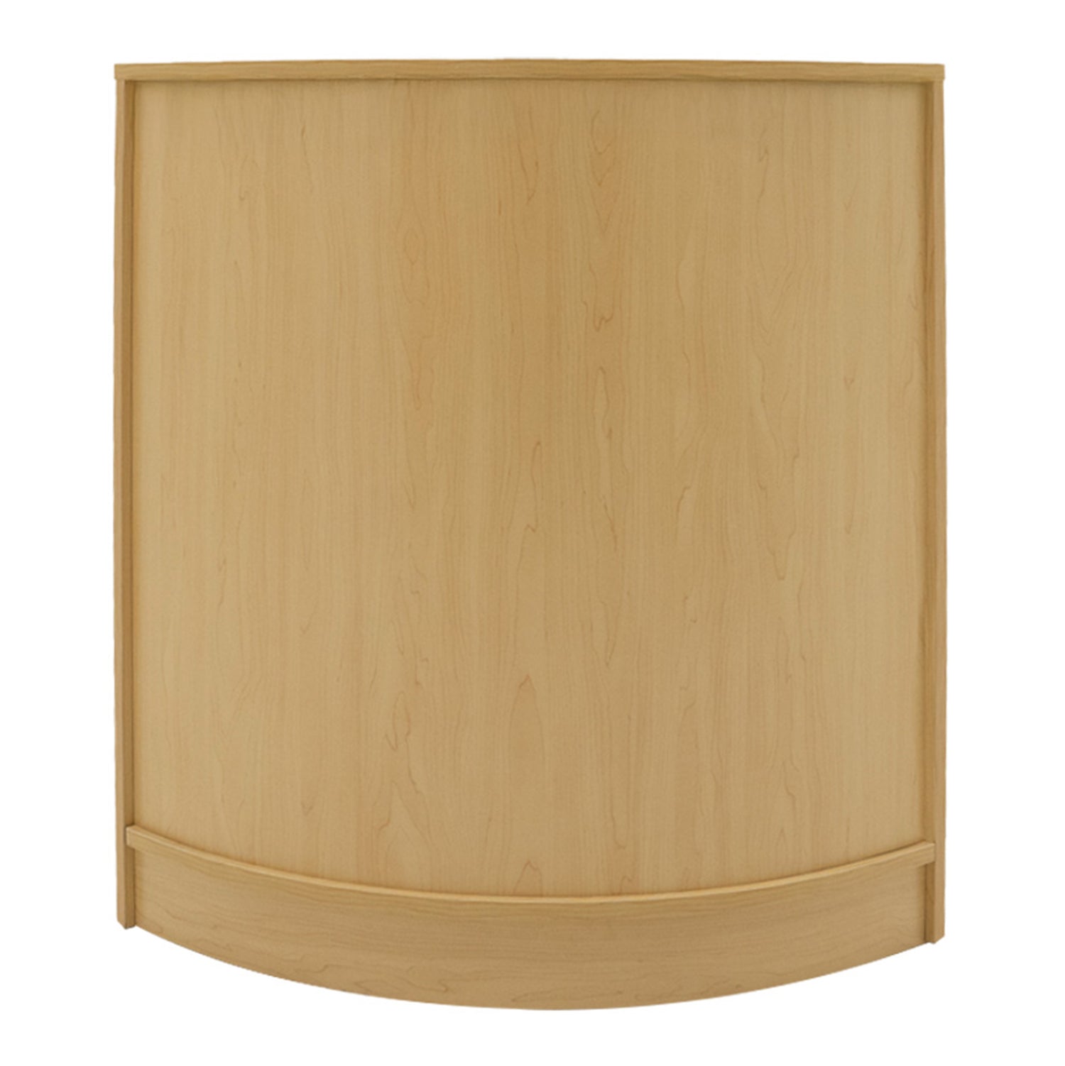 Det kurvade hörndisken CM60 erbjuder platsbesparande funktionalitet och bidrar till ett smidigt butikslayout. Med sin kompakta och rundade design passar den perfekt i hörn eller som länk mellan raka diskar, vilket skapar ett enhetligt och modulärt system. CM60 har en slät, stängd framsida som ger ett stilrent intryck, medan två dolda innerhyllor på baksidan erbjuder praktisk förvaring för lager eller tillbehör. Dessa hyllor är endast åtkomliga när enheten inte är placerad mellan andra diskar, vilket gör CM60 till en diskret och smart förvaringslösning som optimerar hörnutrymmen utan att kompromissa med estetik.