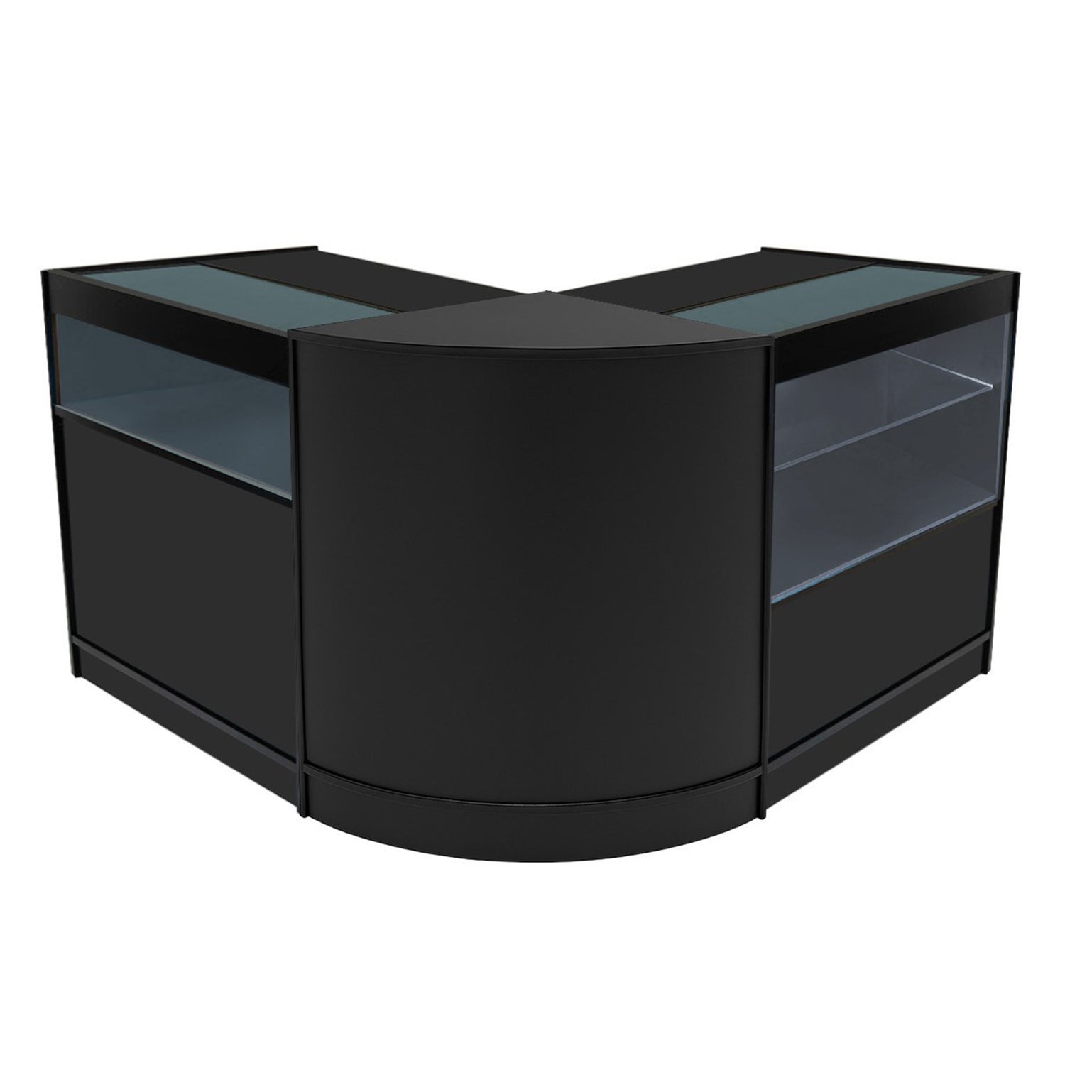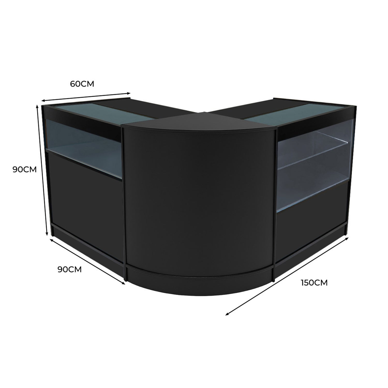 Denna kollektion av svarta LED-belysta kassadiskbord kombinerar modern stil och professionell funktionalitet – perfekt för att skapa en elegant och praktisk produktpresentation i alla butiksmiljöer.