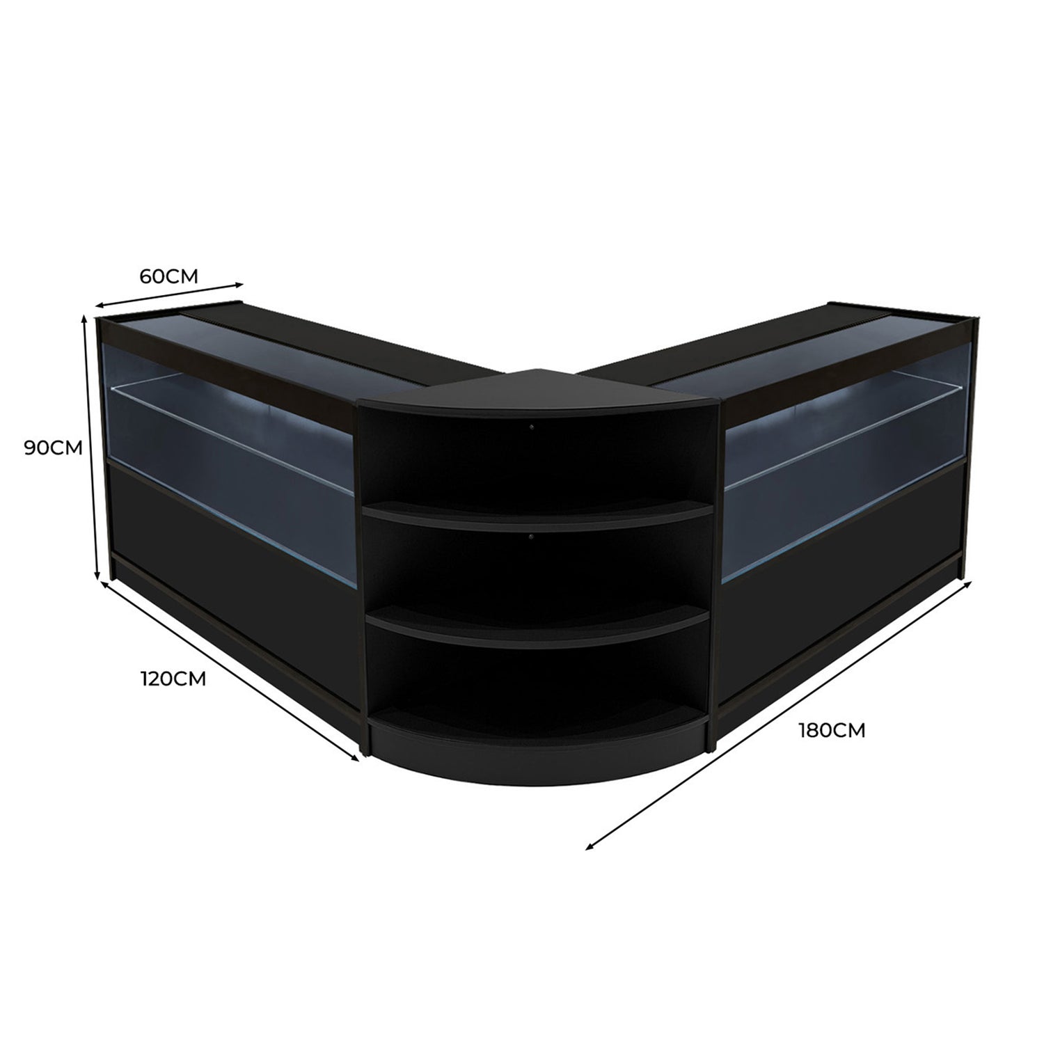 Både C1200 och LM60 är tillverkade i högkvalitativ MDF med tålig svart melaminfinish, vilket garanterar hållbarhet och en modern, enhetlig estetik. Den enhetliga ytan skapar ett visuellt sammanhängande uttryck i hela butiksdisken, medan C1200 härdade glaspaneler tillför en elegant touch på de viktigaste exponeringsytorna.
