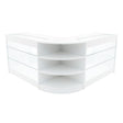 Det kurvade hörndisken CM60 erbjuder platsbesparande funktionalitet och bidrar till ett smidigt butikslayout. Med sin kompakta och rundade design passar den perfekt i hörn eller som länk mellan raka diskar, vilket skapar ett enhetligt och modulärt system. CM60 har en slät, stängd framsida som ger ett stilrent intryck, medan två dolda innerhyllor på baksidan erbjuder praktisk förvaring för lager eller tillbehör. Dessa hyllor är endast åtkomliga när enheten inte är placerad mellan andra diskar, vilket gör CM60 till en diskret och smart förvaringslösning som optimerar hörnutrymmen utan att kompromissa med estetik.