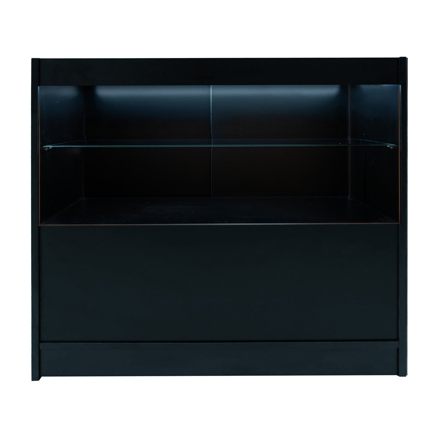 Med en exponeringshylla synlig genom den främre glasrutan och två hyllor dolda från kundens synfält, balanserar dessa diskar perfekt mellan säker förvaring och effektiv presentation. De bakre skjutdörrarna med lås håller lagret säkert samtidigt som disken bibehåller ett rent och professionellt intryck utåt.
