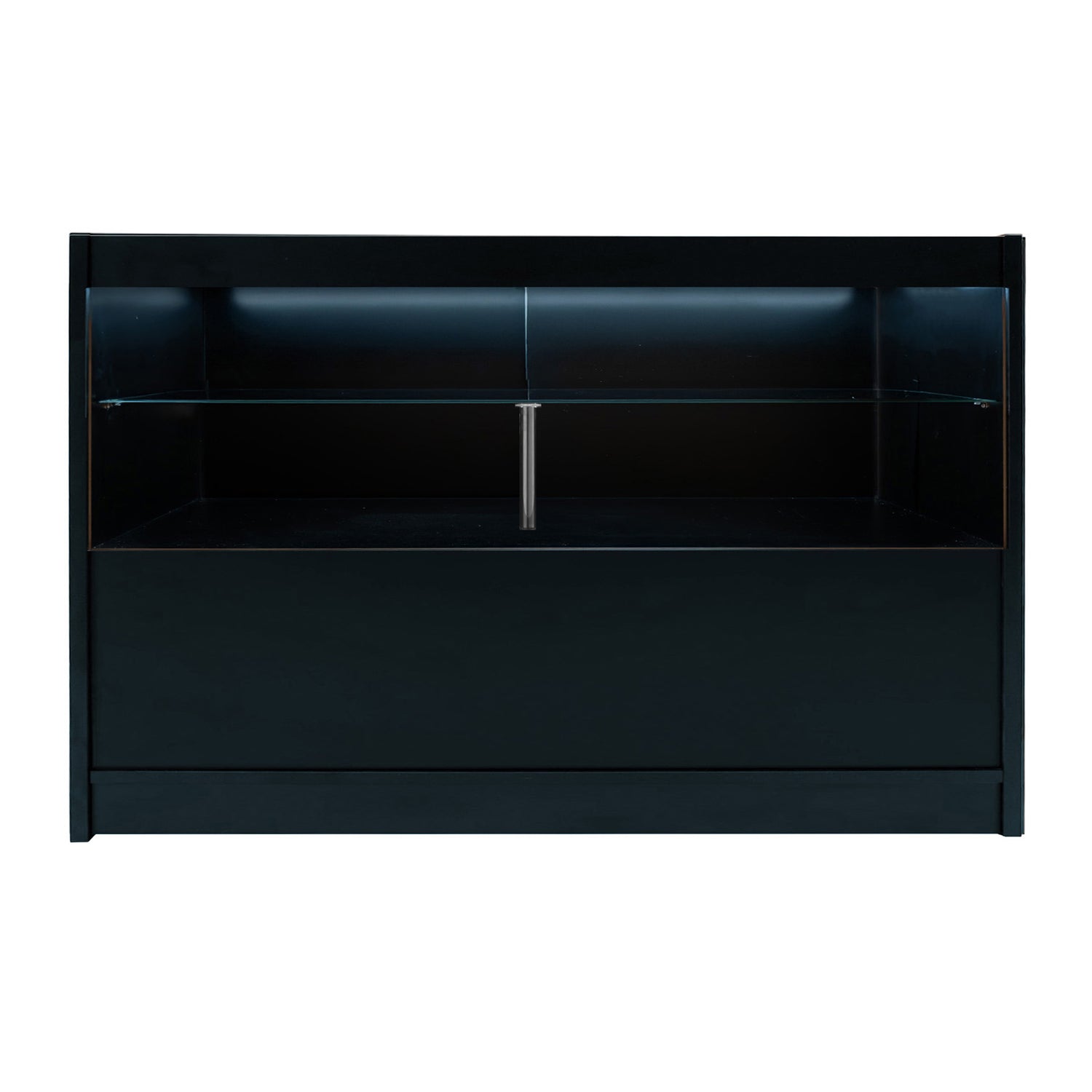 Med tre helt slutna exponeringshyllor bakom en front av härdat glas, skapar K900/K1200/K1500 en perfekt balans mellan produktvisning och säker förvaring. De låsbara skjutdörrarna på baksidan ger diskret åtkomst och bidrar till ett rent och professionellt intryck från kundens perspektiv.