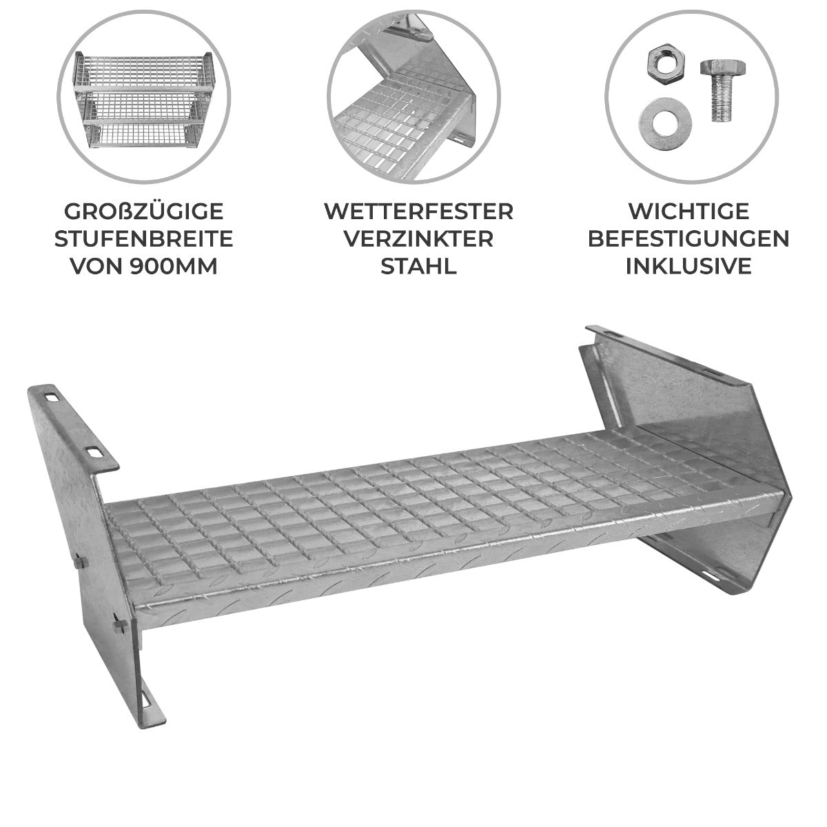 Extra Trappsteg i Galvaniserat Stål - 900 mm bred
