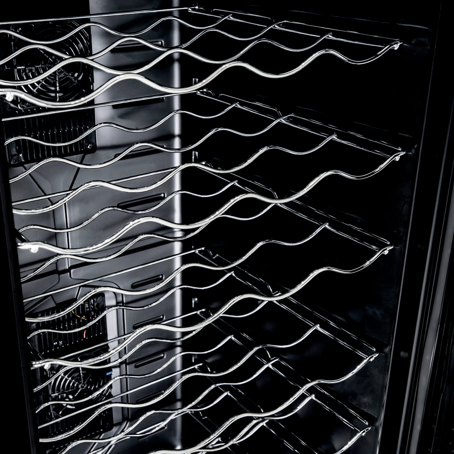 Med en imponerande kapacitet på 78 liter rymmer denna kylare bekvämt upp till 28 flaskor för att passa alla samlingsstorlekar. Dess omsorgsfullt utformade interiör säkerställer enkel organisering och åtkomst, vilket gör den idealisk för både vanliga vinentusiaster och seriösa samlare.