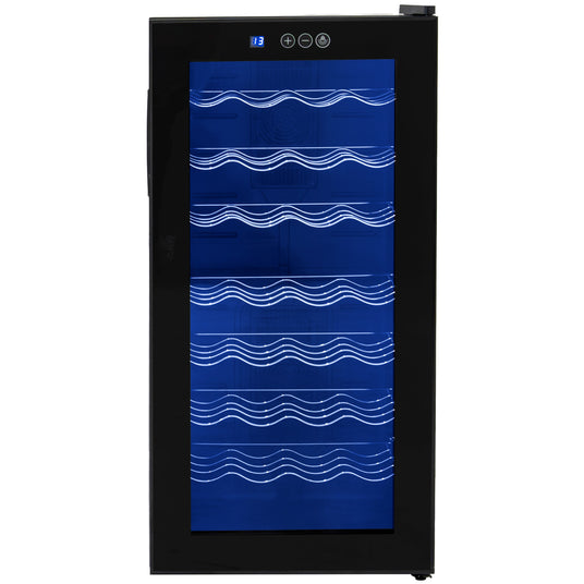 Det unika inslaget är den flerfärgade LED-belysningen med sju olika färgalternativ som kan anpassas efter stämning och miljö. Med musikläge pulserar ljuset i takt med musiken, vilket gör vinkylskåpet till festens mittpunkt.