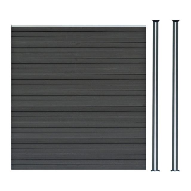 Staket för utomhusbruk i WPC och aluminium – 1x panel + 2 stolpar | Grå