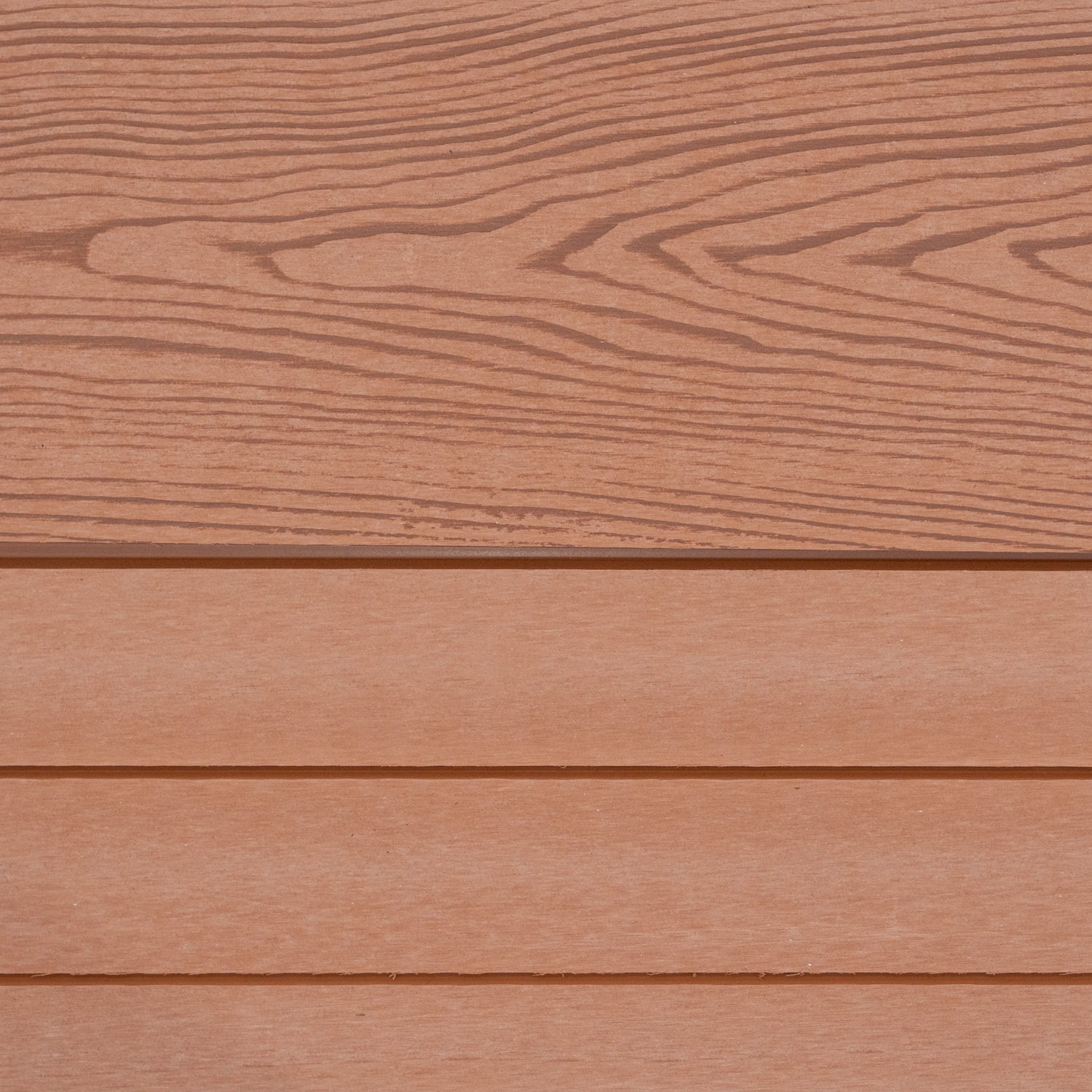 Panelen har en dubbelsidig finish som låter dig välja mellan en naturlig trästruktur eller en modern lamelldesign. Båda sidor har en elegant grå nyans, vilket ger estetisk mångsidighet och en tidlös stil som passar alla utomhusutrymmen.