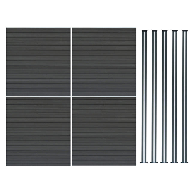 Staket för utomhusbruk i WPC och aluminium – 4x paneler + 5 stolpar | Grå