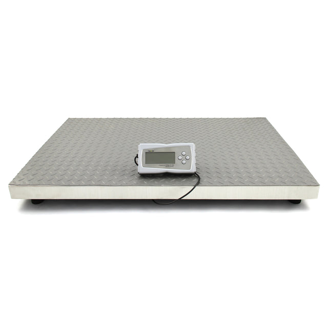 Med en maximal kapacitet på 300 kg/660 lbs kan dessa elektroniska plattformsvågar väga produkter, paket och till och med djur; plattformen på 90 x 60 cm förser en platt och robust yta i rostfritt stål så att de kan stå stadigt när vikten registreras.
