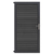 Dörren har en dubbelsidig finish för att passa dina designpreferenser. Ena sidan har en naturlig träådrad yta, medan baksidan har en spårad modern finish — båda i en elegant neutral grå nyans som harmoniserar med vilken utomhusmiljö som helst. Med måtten 180 cm i höjd och 90 cm i bredd skapar den en imponerande gräns som skyddar integriteten samtidigt som den höjer stilen i ditt utomhusutrymme.