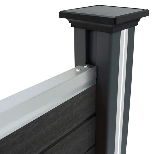 Detta staket består av 9 sammankopplade WPC-lameller och förstärkta aluminiumstolpar och kombinerar styrka, hållbarhet och lågt underhåll. Dess högkvalitativa konstruktion tål väder och vind och bibehåller ett elegant utseende år efter år.