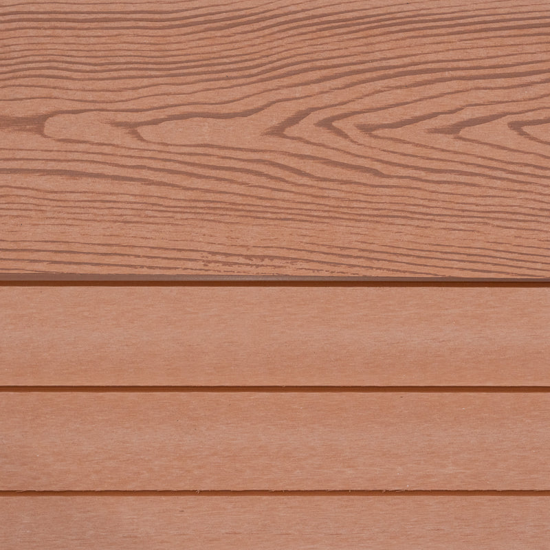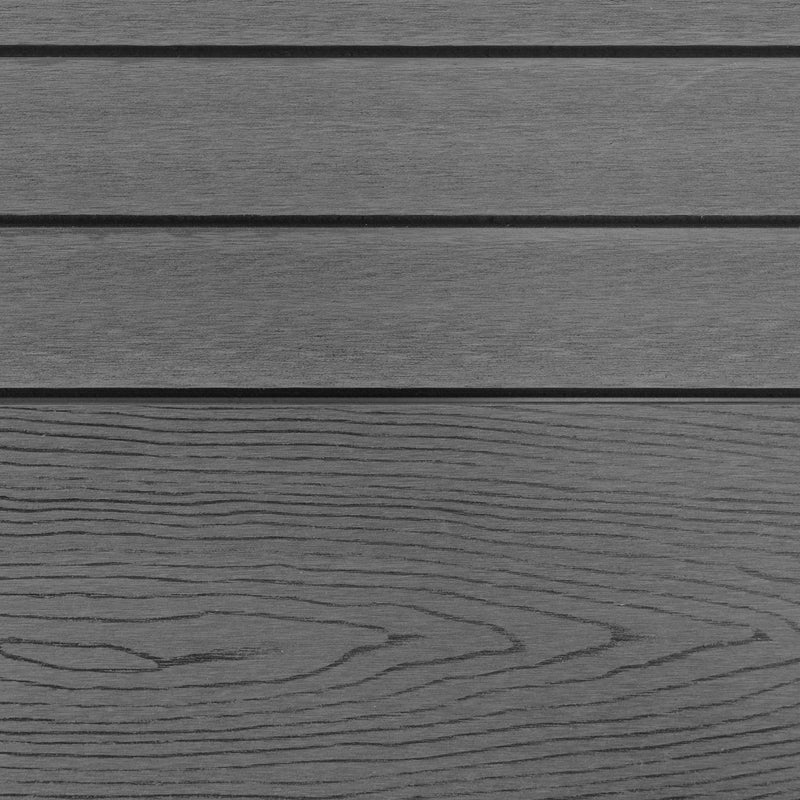 Panelen har en dubbelsidig finish som låter dig välja mellan en naturlig trästruktur eller en modern lamelldesign. Båda sidor har en elegant grå nyans, vilket ger estetisk mångsidighet och en tidlös stil som passar alla utomhusutrymmen.