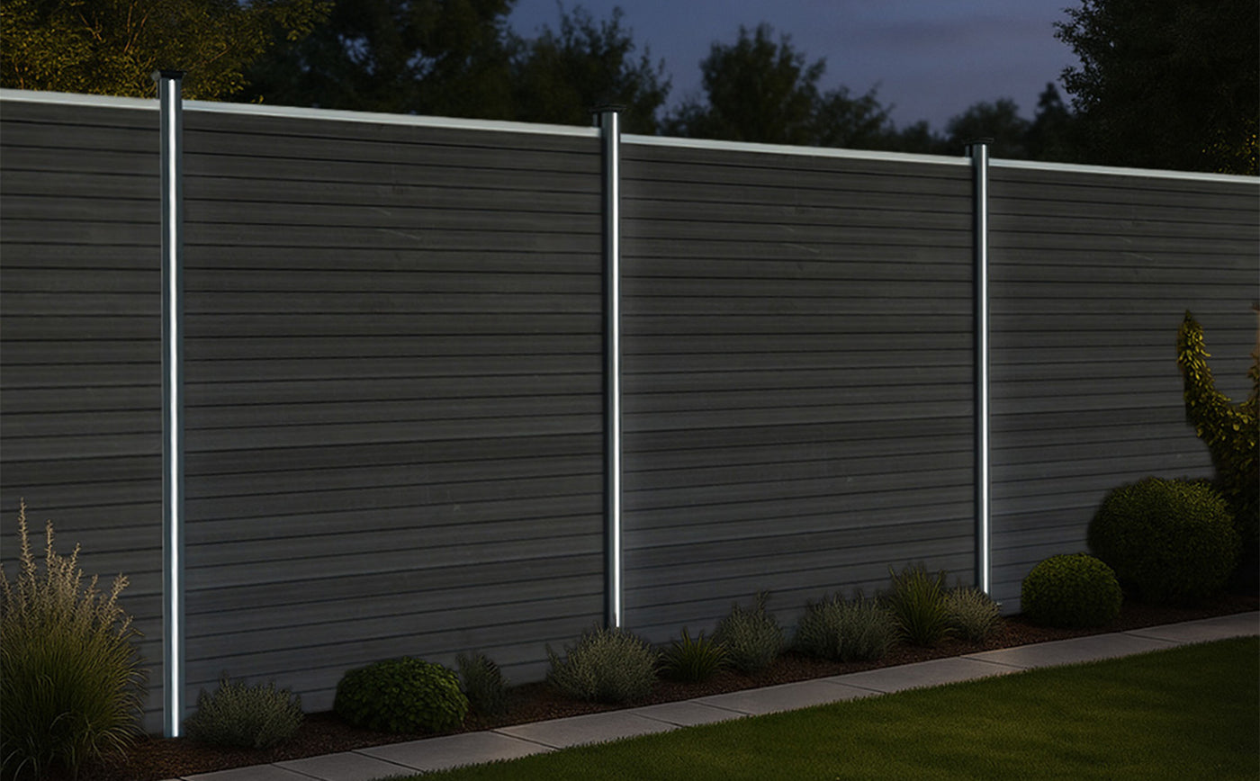 Varje stolpe har en solcellsskyddad LED-remsa som avger ett mjukt omgivande ljus på natten. Tack vare den effektiva laddningen under dagen förbättrar denna miljövänliga lösning både säkerheten och atmosfären i din trädgård, utan att kabeldragning eller underhåll krävs.